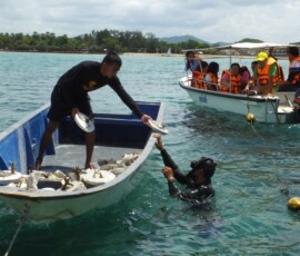 13 กันยายน พ.ศ. 2557 : ปลูกปะการัง เพื่อรักษาระบบนิเวศน์ทางทะเล ณ หาดเตยงาม สัตหีบ
