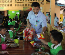 21 ธันวาคม พ.ศ. 2559 : มอบข้าวสารและเลี้ยงอาหารกลางวันเด็กนักเรียน โรงเรียน มาบเตย และ  มาบยางพร
