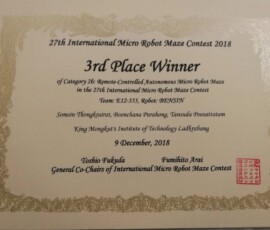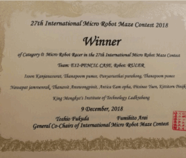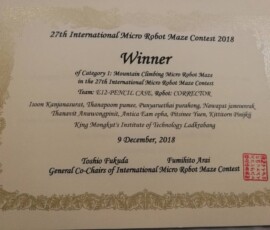09 ธันวาคม 2018 : Okaya & Co., Ltd. and UAM Sponsorship to KMITL : 27th International Micro Robot Maze Contest 2018